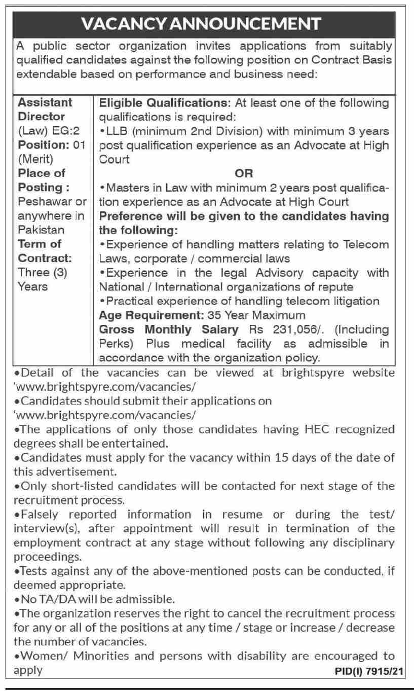 Public Sector Organization Karachi, karachi Sindh Pakistan invites applications from eligible candidates for the post of assistant director as per advertisement of May 16, 2022 published in daily Dawn Newspaper. Persons with Master and Bachelor etc. education can apply.