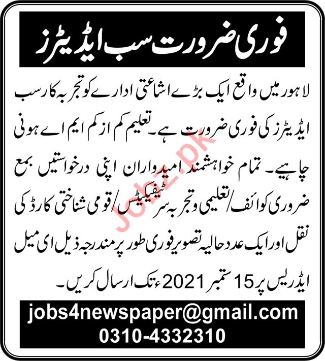 Apply as per details in job advertisement. Login to view further details of how to apply via https://www.jobz.pk online.