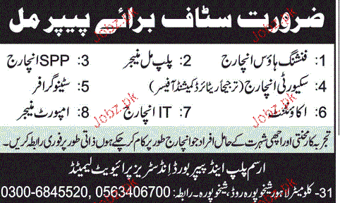Pulp Mill Manager, SPP Incharge, Accountant Job Opportunity