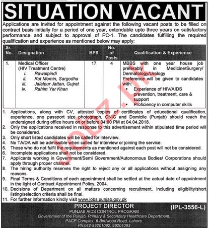 Punjab AIDS Control Program ACP Rawalpindi Jobs 2018 Doctors