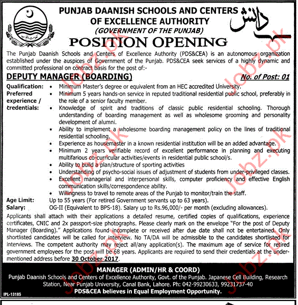 Punjab Daanish Schools And Centers Positions Opening 2017