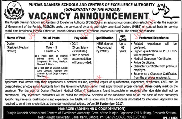 Punjab Daanish Schools & Center Of Excellence Authority Jobs