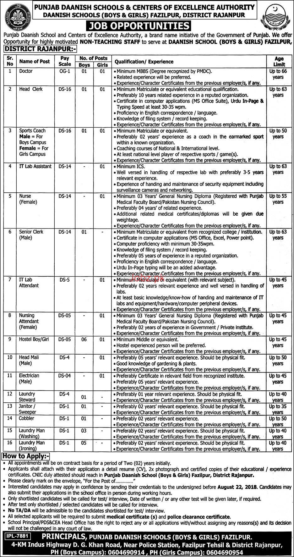 Latest Punjab Daanish Schools & Center Of Excellence Authority Education Posts Rajanpur 2025