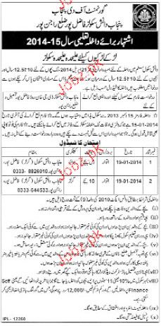 Punjab Daanish Schools Faazilpur Admission in School in Rajanpur Read newspaper ad for exact details.