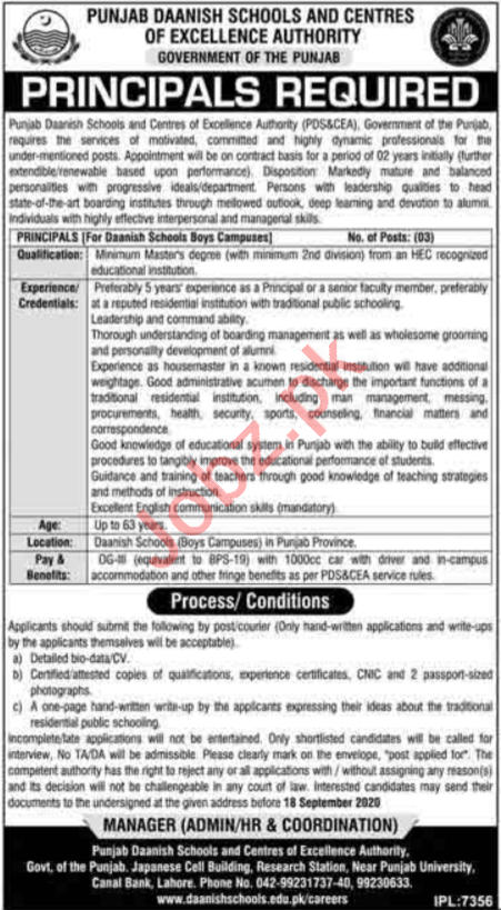 Punjab Daanish Schools PDS&CEA Jobs 2020 For Principals
