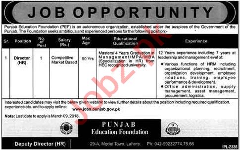 Latest Punjab Education Foundation Management Posts Lahore 2025