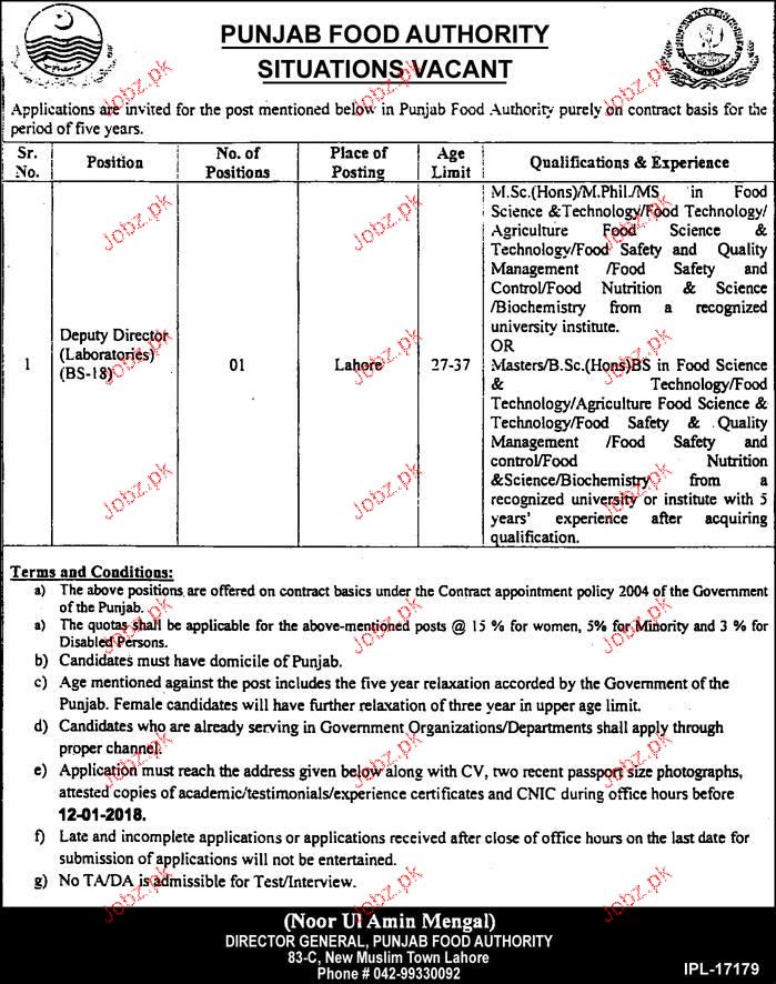 Latest Punjab Food Authority Management Posts Lahore 2025