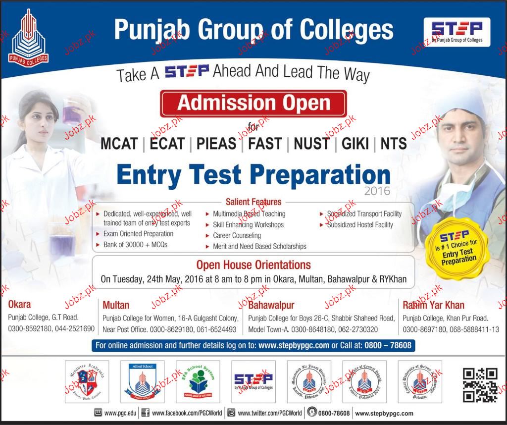 Punjab Group of Colleges Admission in Entry Test Preparation in Lahore. Read newspaper ad for exact details.