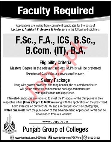 Vacancies in Punjab Group of Colleges PGC Advertisement June 2019
