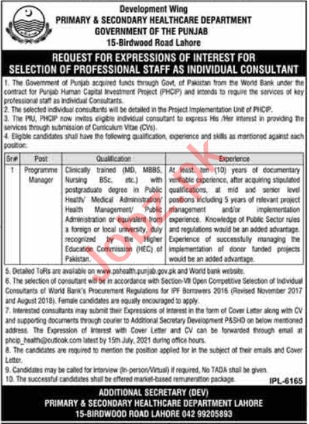 Punjab Human Capital Investment Project PHCIP Jobs 2021
