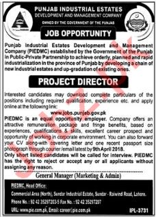Punjab Industrial Estates PIEDMC Jobs 2018 Project Director