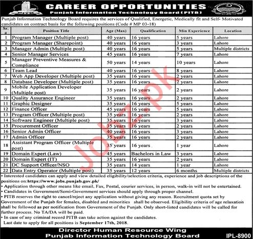 Latest Punjab Information Technology Board PITB IT Posts Lahore 2025