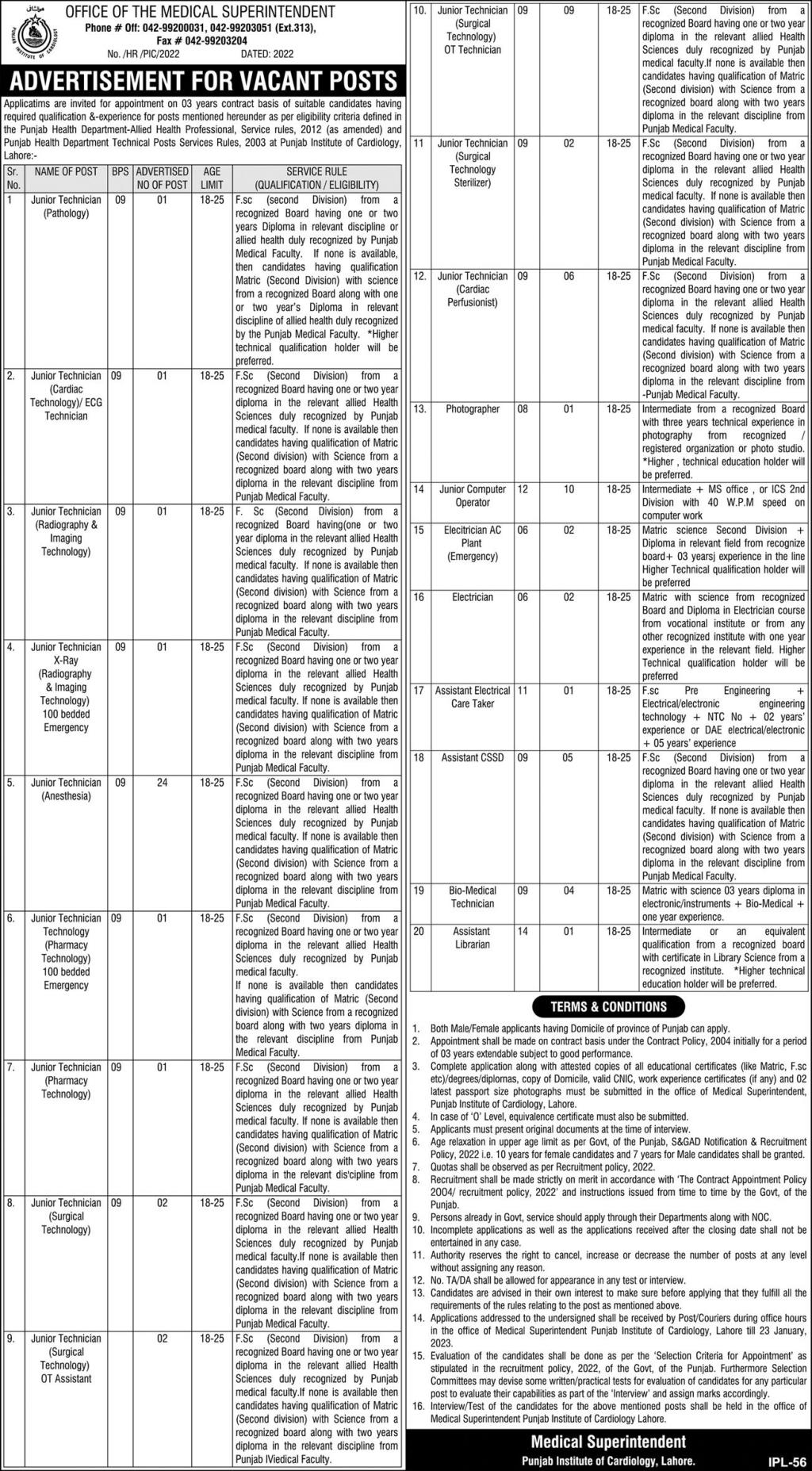 Latest Medical jobs and others Government jobs in Punjab Institute of Cardiology closing date is around January 23, 2023, see exact from ad. Read complete ad online to know how to apply on latest Punjab Institute of Cardiology job opportunities.