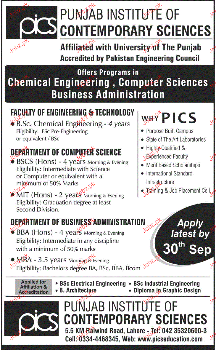 Punjab Institute of Contemporary Sciences Admission in BSc in Lahore. Read newspaper ad for exact details.