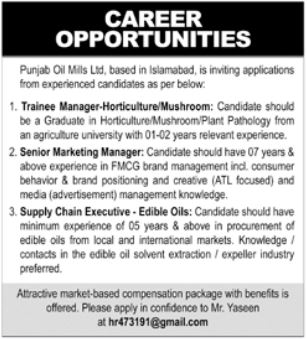 Vacancies in Punjab Oil Mills Pvt Limited Advertisement December 2021
