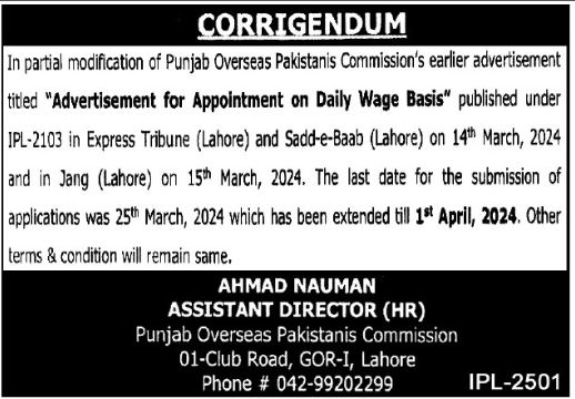 Vacancies in Punjab Overseas Pakistanis Commission Advertisement March 2024