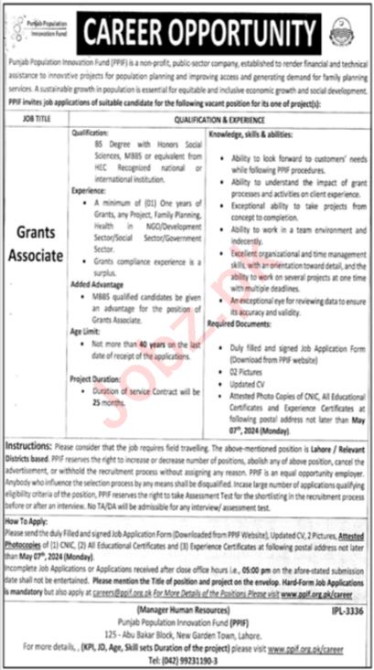 Apply at Punjab Population Innovation Fund PPIF latest Government jobs in Management and departments before closing date which is around May 7, 2024 or as per closing date in newspaper ad. Read complete ad online to know how to apply on latest Punjab Population Innovation Fund PPIF job opportunities.