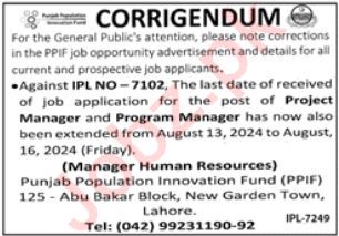 Latest Management jobs and others Government jobs in Punjab Population Innovation Fund PPIF closing date is around August 13, 2024, see exact from ad. Read complete ad online to know how to apply on latest Punjab Population Innovation Fund PPIF job opportunities.