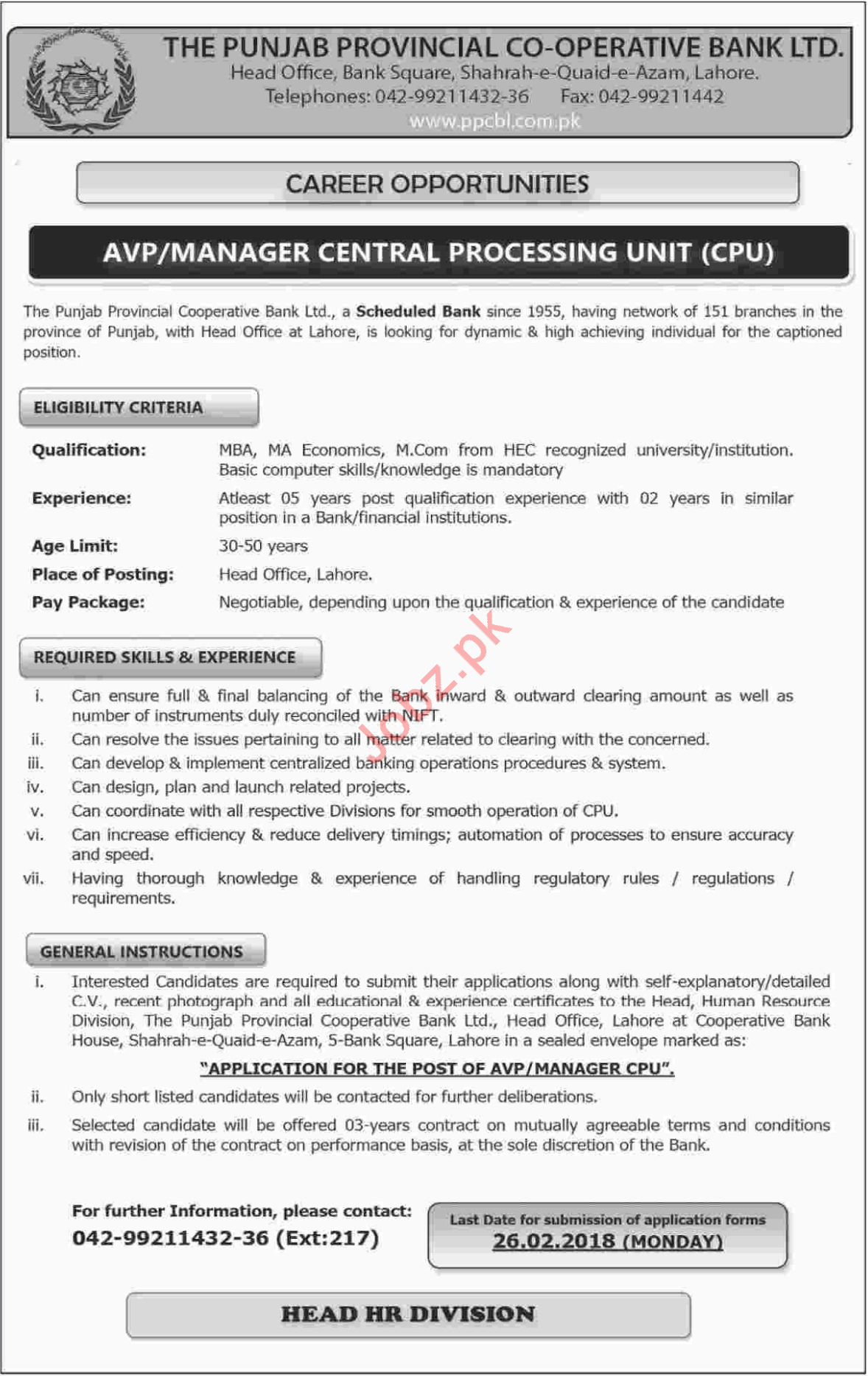 Latest The Punjab Provincial Cooperative Bank Limited Management Posts Lahore 2025