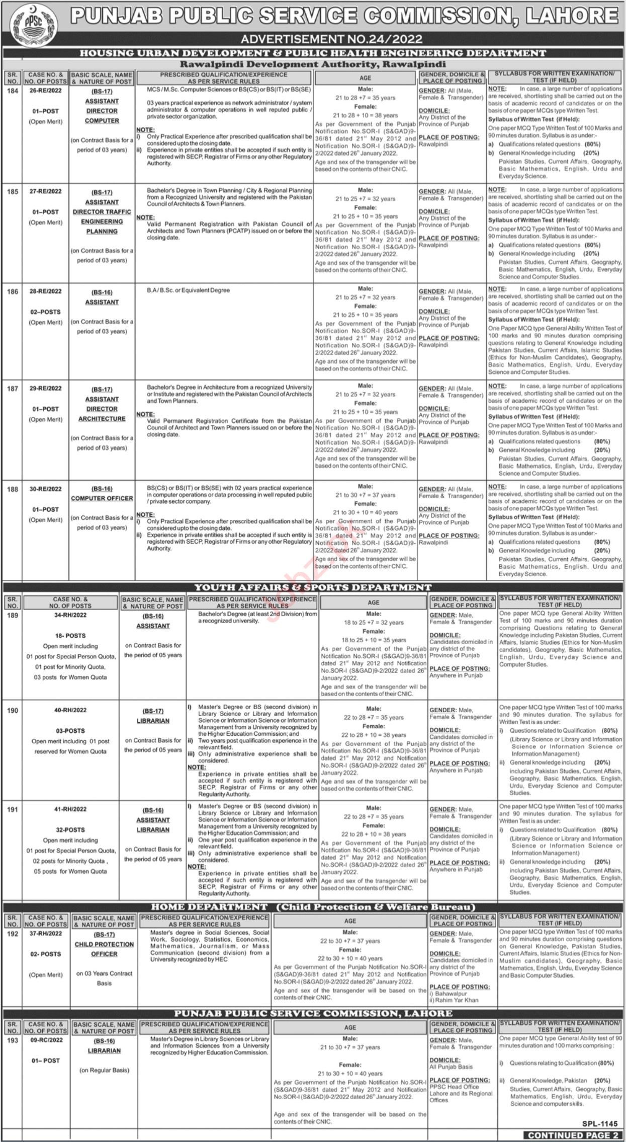 Punjab Public Service Commission PPSC jobs advertisement dated about 25 September 2022 in daily Jang Newspaper invites application for the vacant post of computer officer, computer operator, inspector of boiler, clerk, librarian, asistant, assistant director computer, chemist, assistant, branch officer, assistant director traffic engineer planing, assistant librarian, child protection officer, assistant director hr admin, assistant director it software, assistant director architect and motor vehicle examiner in Lahore, lahore Punjab Pakistan. MIT, Bachelor, Matric, Master, MS and Intermediate etc. educational qualification will be preferred.