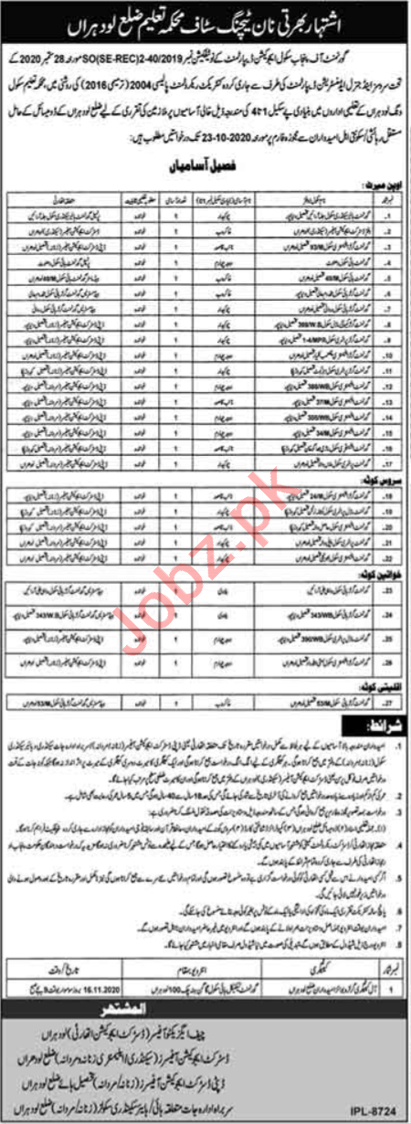 Punjab School Education Department Lodhran Jobs 2020