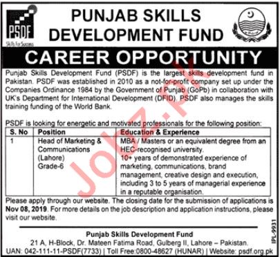 Vacancies in Punjab Skills Development Fund PSDF Advertisement October 2019