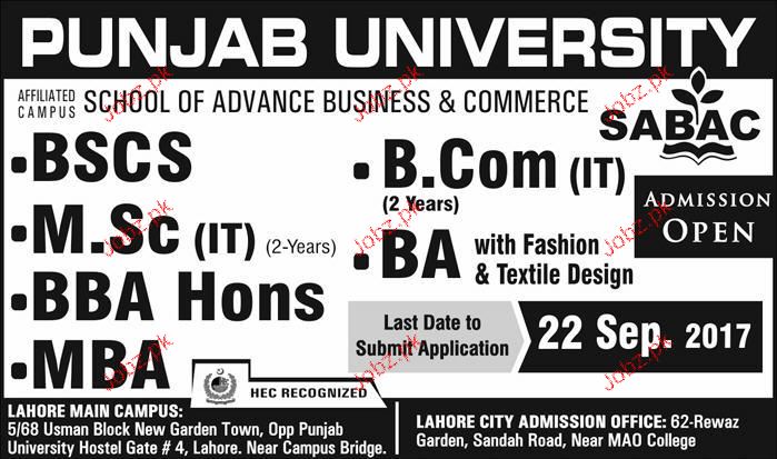 Punjab University Admission in BSCS, MSc and MBA in Lahore. Read newspaper ad for exact details.