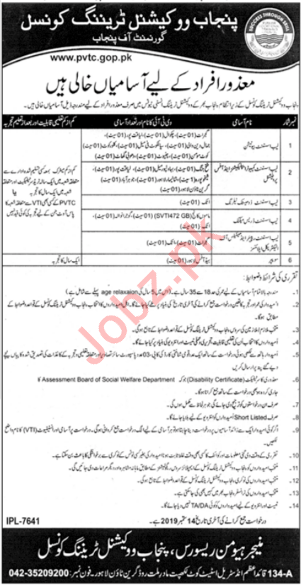 Vacancies in Punjab Vocational Training Council Advertisement August 2019
