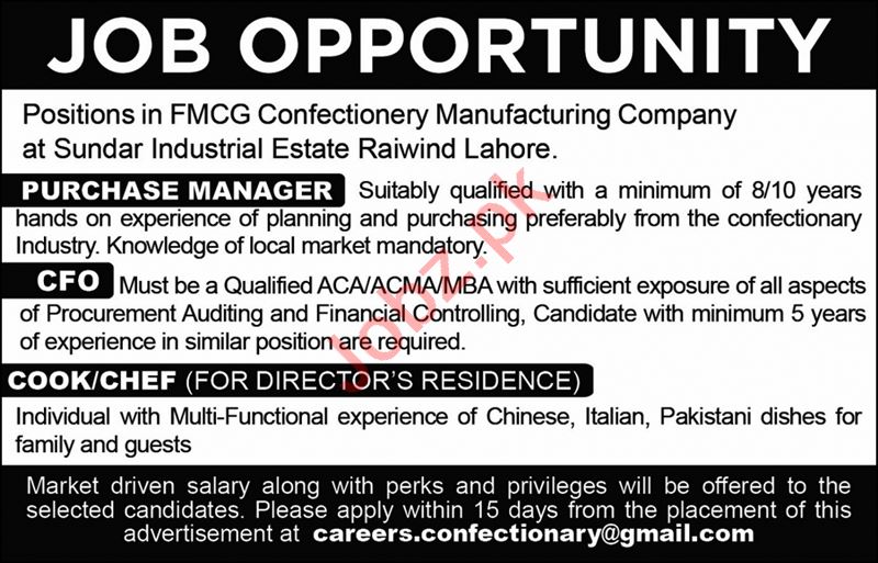 Vacancies in FMCG Manufacturing Company Advertisement May 2019