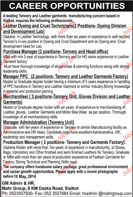 Apply as per details in job advertisement. Login to view further details of how to apply via https://www.jobz.pk online.