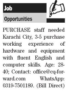 Private Company invites applications for job positions advertised in daily The News dated 22 November 2025 for following vacancies in Karachi, karachi Sindh Pakistan.