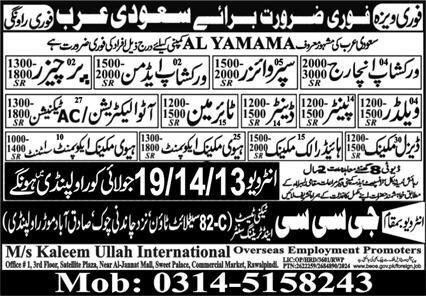 GCC Techni Test & Training Center jobs advertisement dated about 12 July 2024 in daily Express Newspaper invites application for the vacant post of auto electrician, denter, welder, tyreman, painter, heavy mechanic equipment, hydraulic mechanic, workshop admin, heavy mechanic equipment assistant, supervisor, ac technician, diesel mechanic, workshop incharge and purchaser in Riyadh, dammam Saudi Arabia. Preferred Education is Intermediate, Bachelor, Matric and DAE etc.
