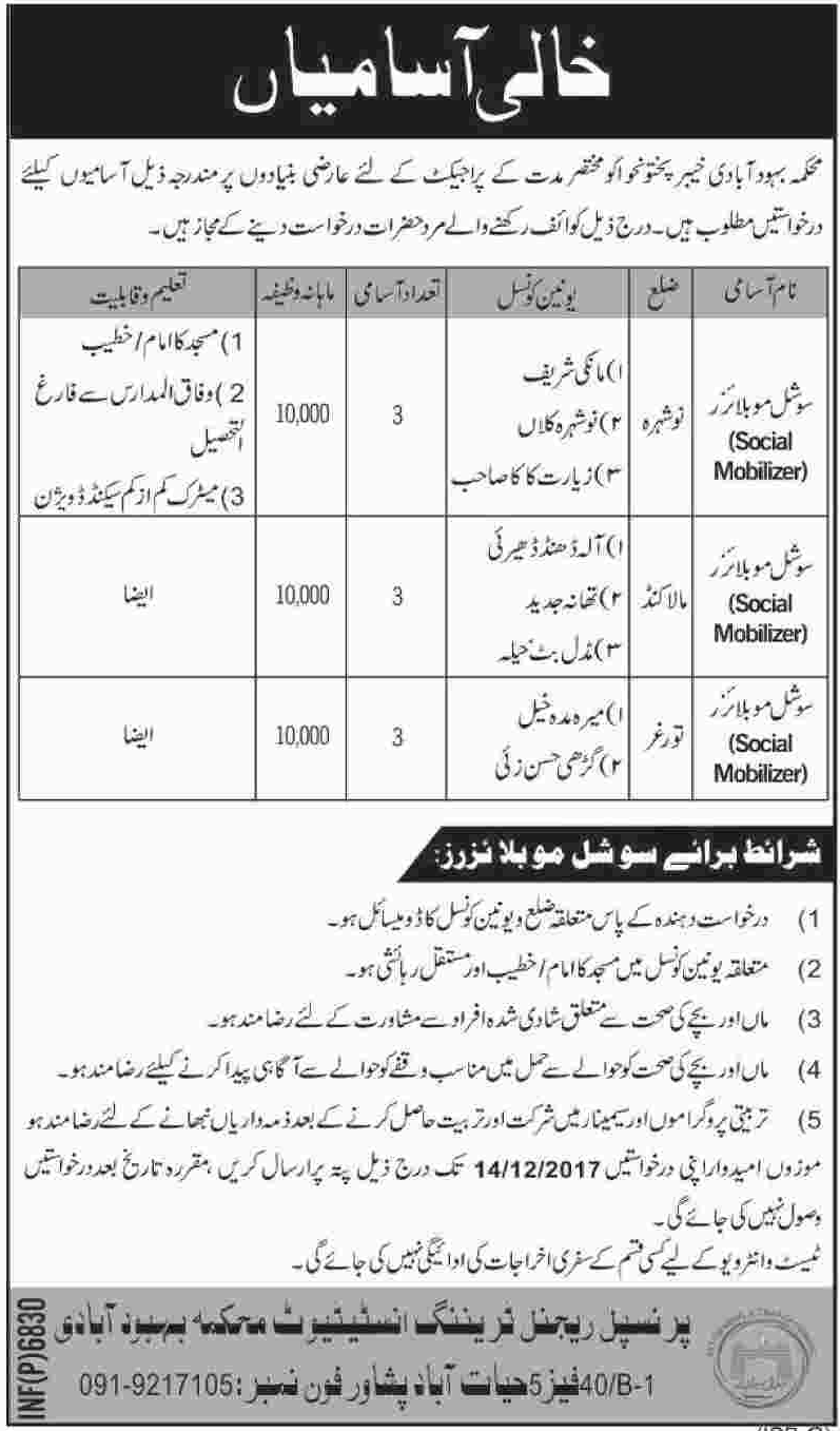 PWD Khyber Pakhtunkhwa Required Social Mobilizers