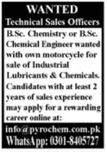 Private Company Lahore, lahore Punjab Pakistan invites applications from eligible candidates for the post of technical sales officer as per advertisement of May 12, 2025 published in daily Jang Newspaper. Preferred Education is Bachelor etc.