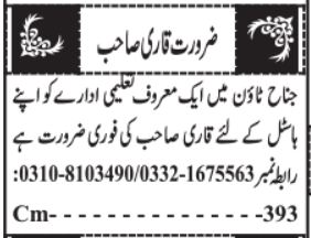 Vacant posts including qari and quran teacher are announced in Educational Organization Quetta, quetta Balochistan Pakistan as per 14 October 2022 advertisement in daily Jang Newspaper. Candidates with Bachelor and Intermediate etc. educational background will be preferred.