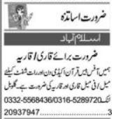 Qaria & Quran Teacher Jobs 2024 in Islamabad