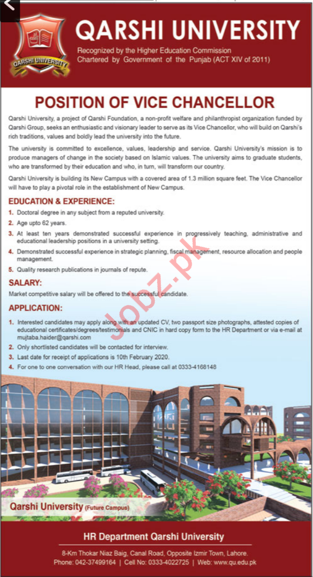 Qarshi University Chanceloort Jobs In 2020