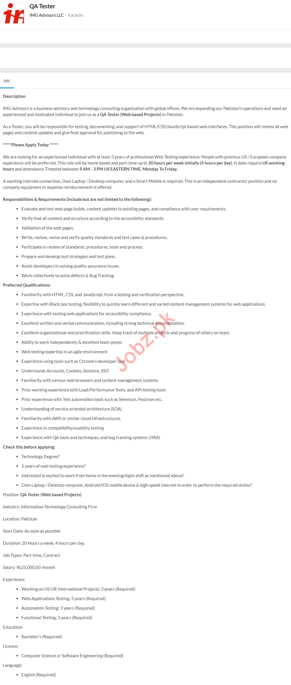 Qaulity Assurance Tester Jobs In IMG Advisor LLC