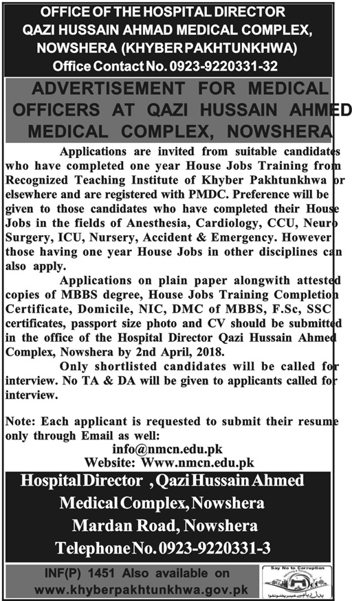 Latest Qazi Hussain Ahmed Medical Complex MTI Medical Posts Nowshera 2025
