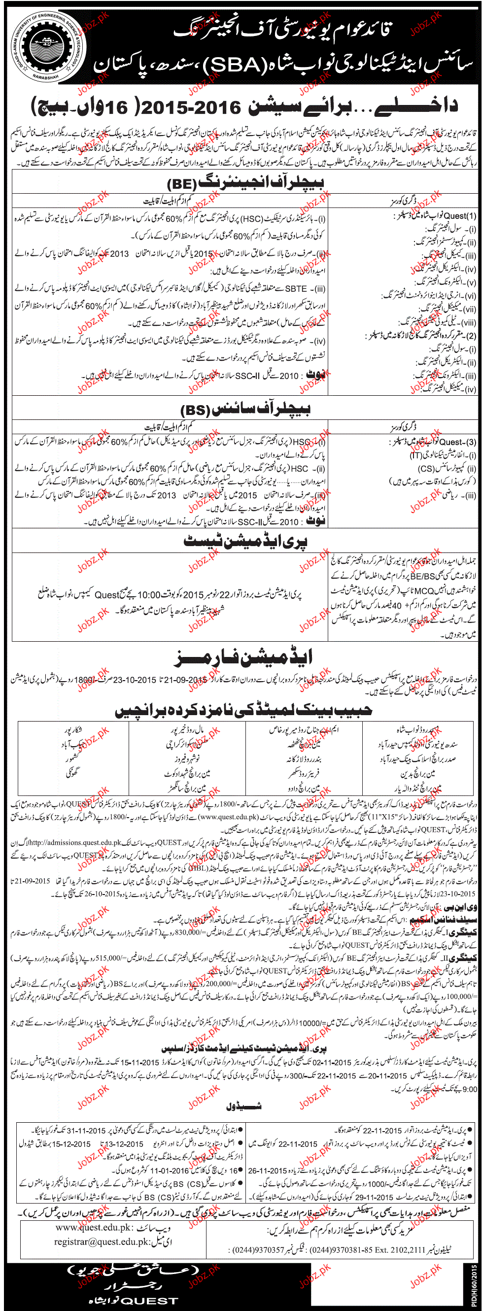 Quaid Awam University of Engineering, Science and Technology in Nawab Shah Read newspaper ad for exact details.