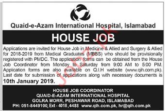 Vacancies in Quaid e Azam International Hospital Advertisement December 2018