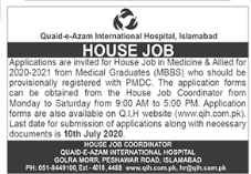 Quaid e Azam International Hospital Job 2020 in Islamabad