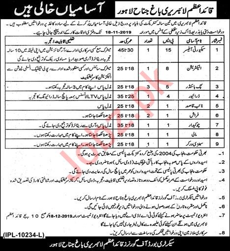 Quaid E Azam Library Lahore Jobs 2019