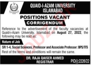 Vacancies in Quaid e Azam University Advertisement October 2022