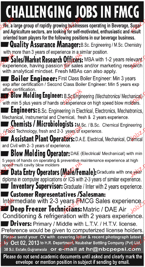 Apply as per details in job advertisement. Login to view further details of how to apply via https://www.jobz.pk online.