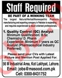 Vacancies in Masood Textile Mills Limited Advertisement October 2018