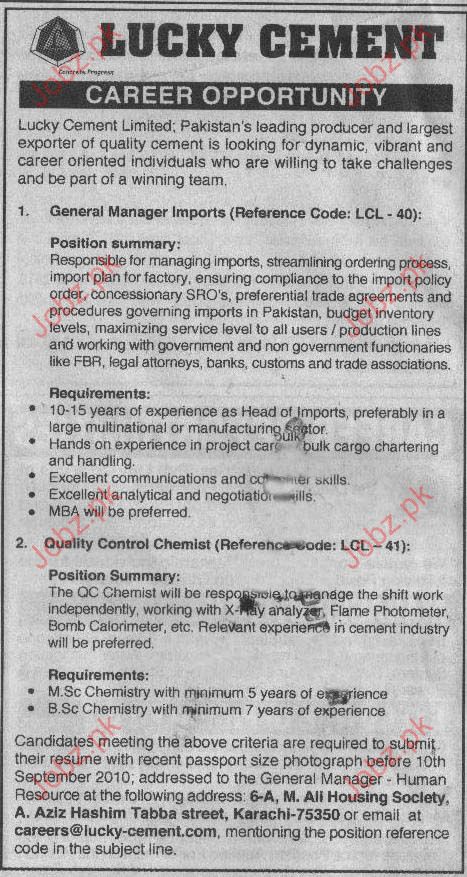 Apply as per details in job advertisement. Login to view further details of how to apply via https://www.jobz.pk online.