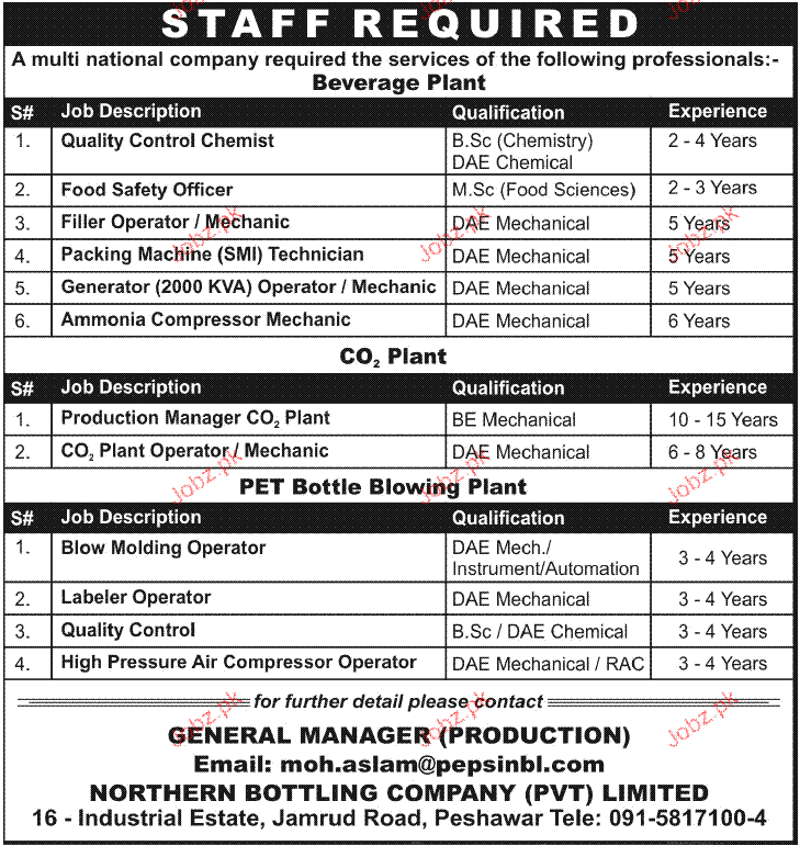 Latest Private Company Industrial Posts Peshawar 2025