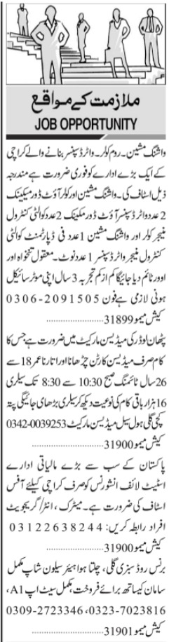 Private Company invites applications for job positions advertised in daily Jang dated 23 July 2024 for following vacancies in Karachi, karachi Sindh Pakistan.