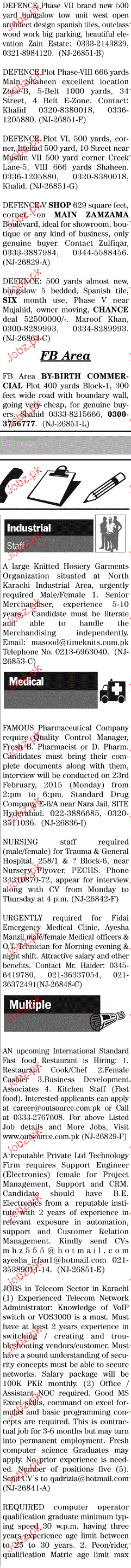 Quality Control Manager and Nursing Staff are required in Karachi.